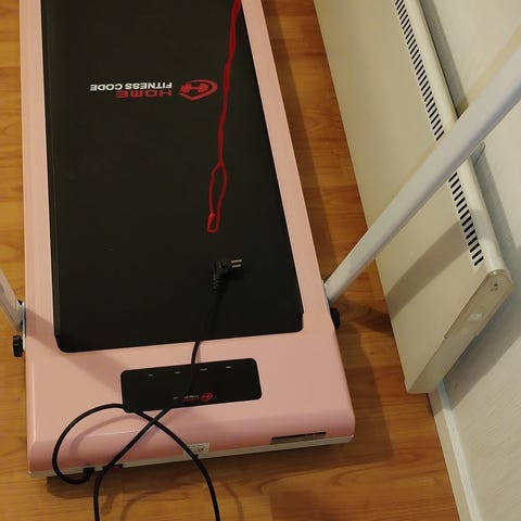 Foldable walking pad. Gymstick. Missing its power cord, but uses standard cord that is easily replaced. Can demonstrate functionality with other power cable.
