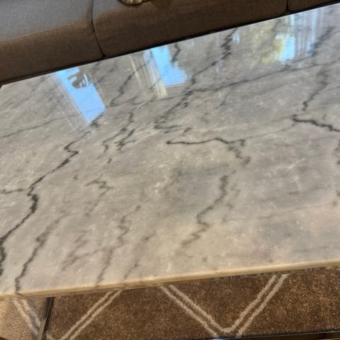Marmorikuvioitu valkoinen/harmaa sohvapöytä