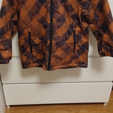Reiman toppatakki koko 122. Hyvä käytetty kunto. Edessä ja hihansuissa pieniä tummuma kohtia. Yleisilme kuitenkin hyvä.