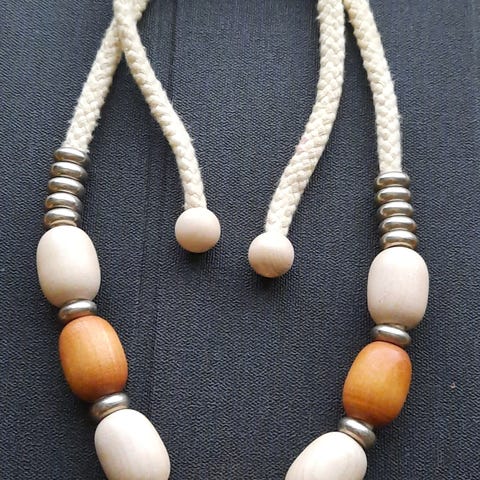 Myydään Aarikkan kaunis, musta, puinen kaulakoru. Säädettävä. Käytetty muutaman kerran.