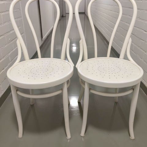 istuimen rottinki molemmissa korjailtu. Toisessa pieni kuluma, toisessa korjattu n. 10cm kokoinen reikä. Hyvin liimattu ei purkaudu ja molemmat kestää varmasti istumista.