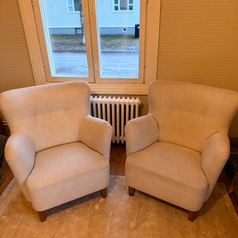Tästä jollekin tarvitsevalle kaksi mustaa nahkaista nojatuolia.
