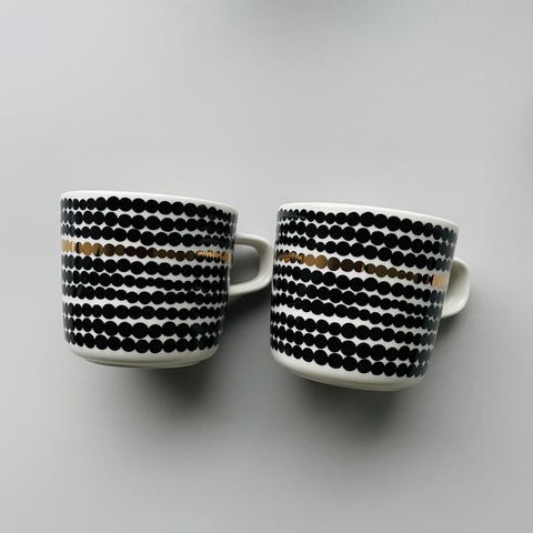 Myydään kaksi Marimekon Oiva 10th anniversary- mukia. Vähän käytetty, en löytänyt moitteita. Ensisijaisesti nouto mutta ostajan vastuulla voin myös postittaa.