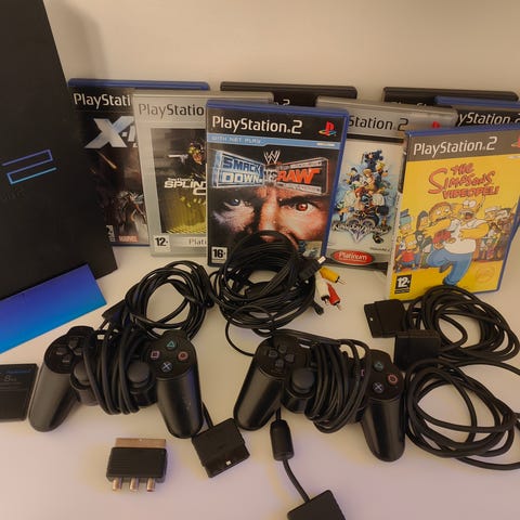 PS2 Konsoli, 2 Ohjainta, Kaapelit ja 7 Peliä ja Muistikortti