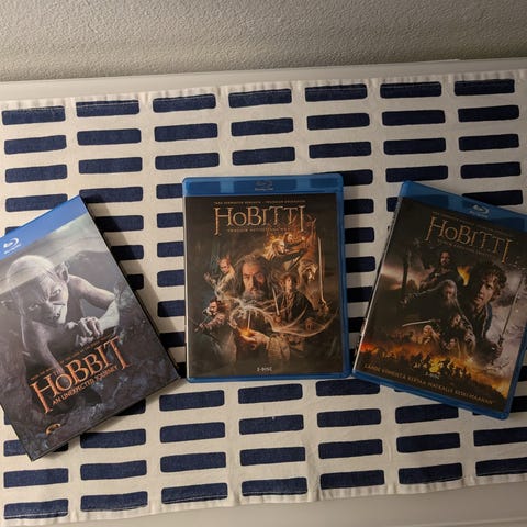 The Hobbit Blu-ray elokuvasarja sisältää kolme elokuvaa. Sarja on englanninkielinen ja esitetty Blu-ray-formaatissa., Suomi tekstitykset nouto ja käteinen