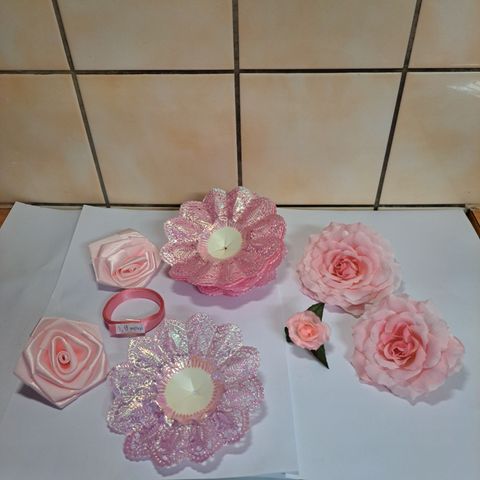 Käytyämätön viiri, jossa vaaleanpunaisia ja -sinisiä viirejä. Viirit kankaisia.