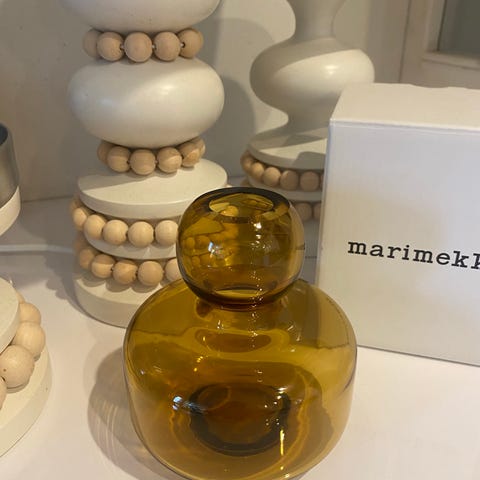Vaasi lasimaljakko lasi taide Marimekko Marimekon maljakko kukkavaasi mini umpu urna iittala caramel kinuski Flower vase