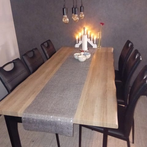 Erittäin tukeva ruokailuryhmä. Ei nitku tai nitise. Pöytä ja viisi tuolia. Kuudennen pinnoiltaan huonompikuntoisen saa kaupan päälle, jos haluaa. Jatkopalalla saa 40cm lisää pituutta, silloin 199cm. Pöydän jalat saa irroitettua kuljetuksen ajaksi. Myydään muuton vuoksi.