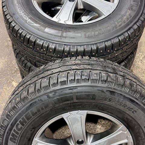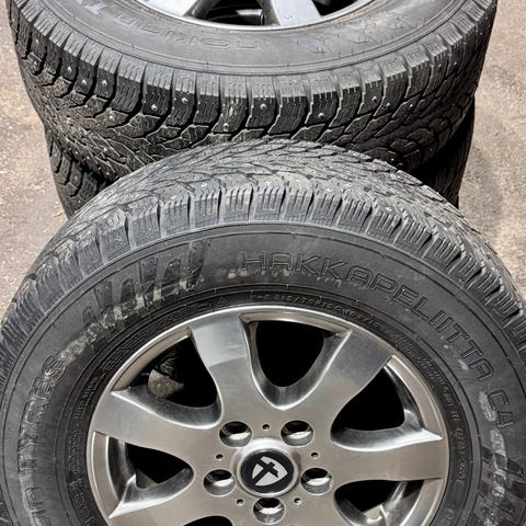 Myydään Nokian Hakkapeliitta C-sarjan nastarenkaat alkuperäisillä alumiinivanteilla.