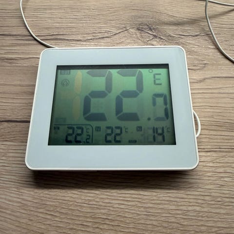 Myydään Clearin digitaalinen lämpömittari, joka mittaa sisä- ja ulkolämpötilan lisäksi ilmankosteuden.