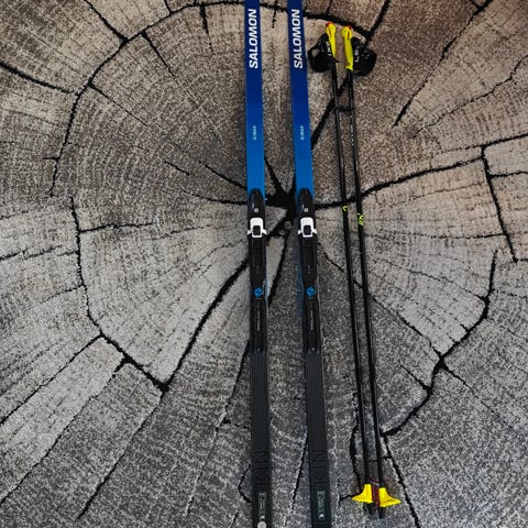 Lasten skinisukset. Pohja luistovoideltu ja skinit putsattu. Valmiit hiihtoon. Naarmuja pohjassa.