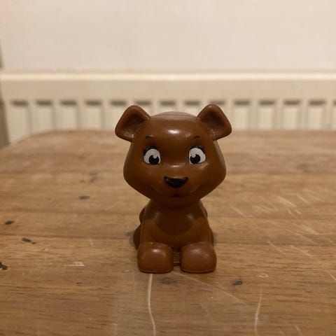 Myydään kuvan Ryhmä Hau koira figuuri AL. Vähäisiä leikin jälkiä. Korkeus edestä n. 6 cm ja pituus n. 5 cm.