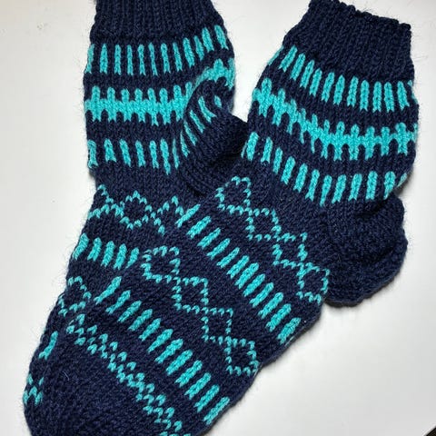 Itsetehdyt villasukat. Koko 38-39. 80% villa / 20%polyamidi.Konepestävä 40asteessa, ei kuivausrumpua.