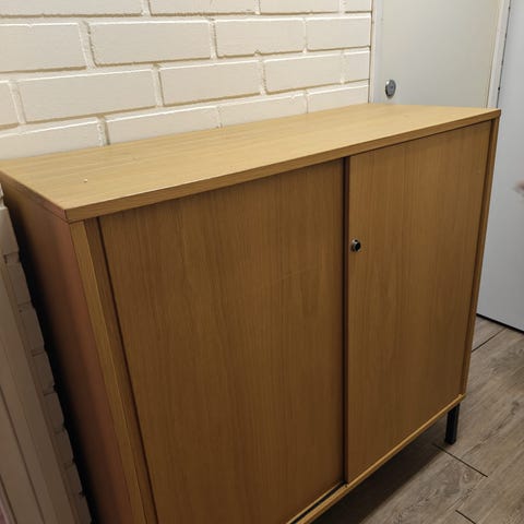 Mäntypuinen kaappi. Neljä säädettävää hyllyä.