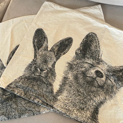 Kolme Finlaysonin tyynyliinaa, koko kaikissa sama 49x62cm. Norsu tyynyliinassa pieni tahra. Kaikki yhteishintaan 15€