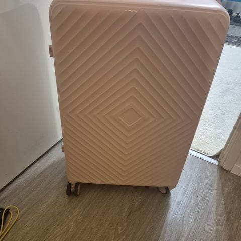 Myydään mywear ruusukulta/pinkki matkustamokokoinen matkalaukku.
