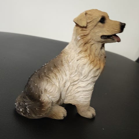 Lomonosovin koira figuuri, posliinia. Figuuri esittää makuulla olevaa koiraa. Sopii koriste-esineeksi tai keräilykohteeksi.