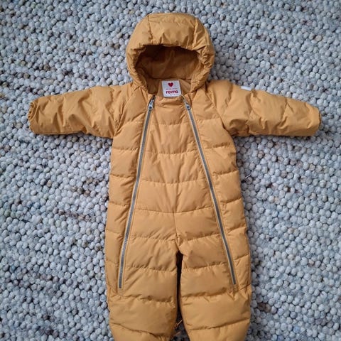 Myydään hyväkuntoinen Reiman untuvahaalari. Pesty hajusteettomalla pesuaineella. Vähän kulumisen jälkiä takapuolella, polvissa ja hihansuissa. Näkyy kuvista.