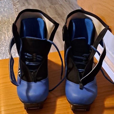 Vanhat mutta laadukkaat kilpamonot eli istuvat tiukasti ja tukevat jalkaa "tavallisia" monoja enemmän. Sopii NNN-siteisiin. Toisesta monista vetoketju korjautettu suutarilla, toisesta vetoketjun vedin puuttuu.