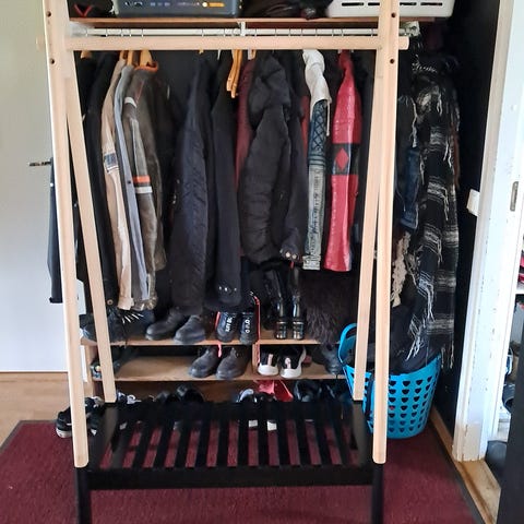 5 säilytystasoa joista ylin tuollainen henkarimallinen.