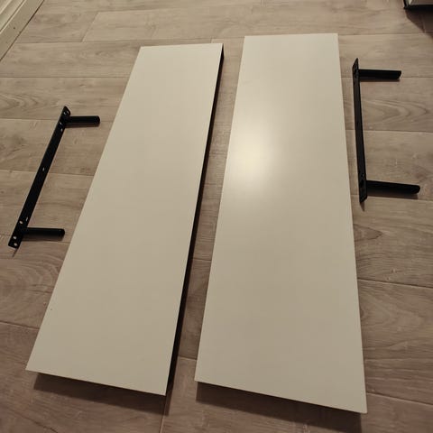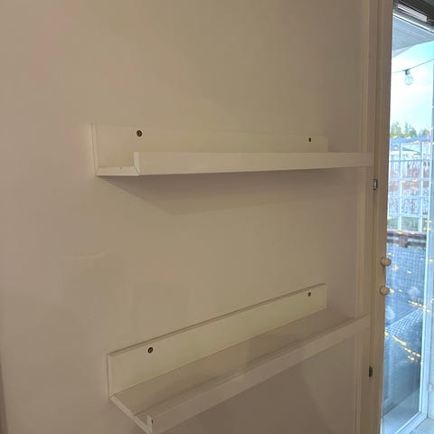 Valkoiset ikea seinähylly hyllyt uusi uudet seinähyllyt käyttämättömät teräksinen tukeva tukevat teräs seinä seinälle 80 20