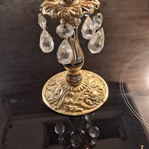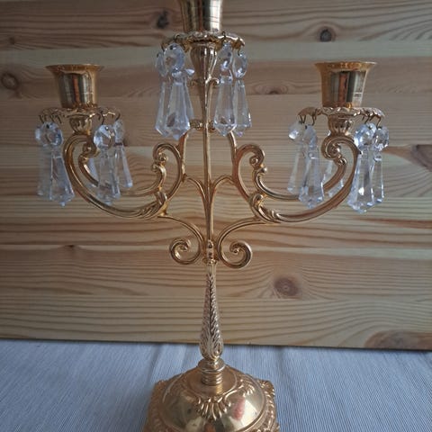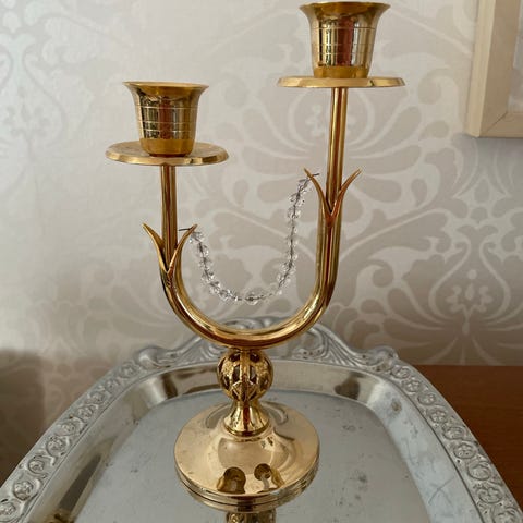 Turun kristallin hopeanvärinen kynttilänjalka. Koristeena aidot hiotut kristallit. Korkeus 17cm. Tarvittaessa postitus 8.90e