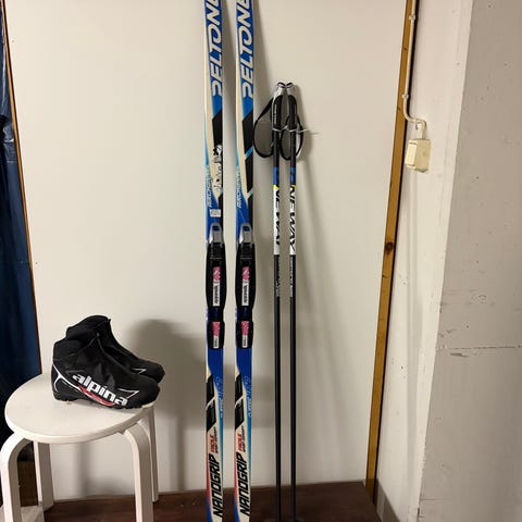 Sukset Fischer 202 cm nnn - profiilin siteellä. Sauvat Exel 155 cm. Sauvoiksi voi vaihtoehtoisesti ottaa 150 cm sauvat. Monot uudenveroiset Alpina T10 koko 44 nnn. Monoiksi voi vaihtoehtoisesti ottaa koon 42 monot.
