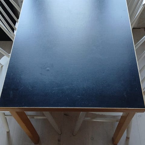 Myydään kuvan uudenveroinen Aalto pöytä 82 B eli koivu - musta linoleumi. Huomaa linoleumi herkempi materiaali kuin laminaatti.