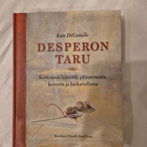 Myydään uusi Desperon taru -kirja, kertomus hiirestä, prinsessasta, keitosta ja lankarullasta. Sivuja 259, ihana tarina pienestä hiirestä, jolla on suuret unelmat. Kuvitettu.