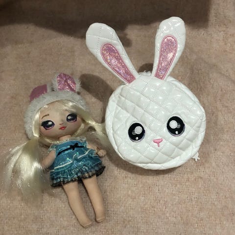 Mukaan kuuluu nukke, makuupussi, takki ja harja. Siisti kunto.