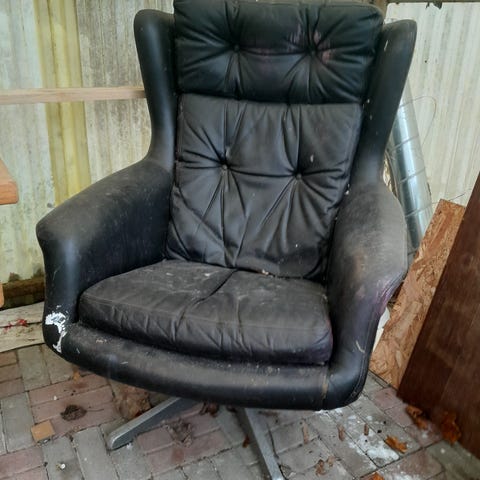 Myydään 70- 80-luvulta nahkainen lepotuoli. Nahkainen pehmuste kulunut, muuten siisti ja ehjä, käyttökunnossa. Uudelleen päällystämällä saa hienon. Kaikki jalkojen pehmusteet tallessa, mutta vähän rikkoontuneet.