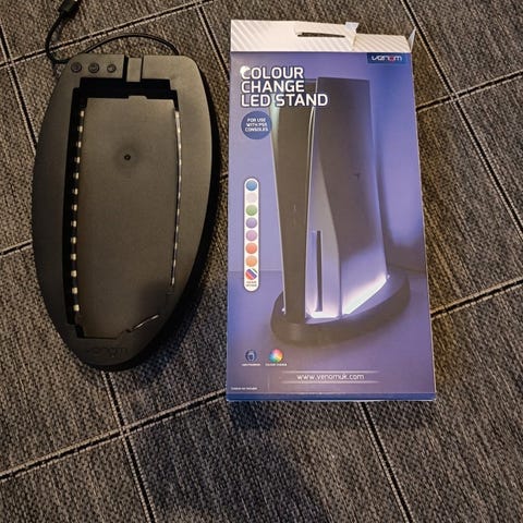 Kuvan mukainen uusi Playstation 5 pelikonsolin valaiseva alusta. Saimme jouluksi näitä 2,joten toinen nyt myyntiin. Paketti hieman revennyt niin palautus ei onnistu. Uutena 39,90. Honkakylä. Kissakoti. Emme tupakoi.