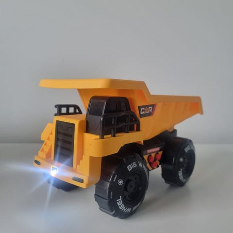 Erittäin siistikuntoinen lelu seuraavalle lapselle. Sisältää 3 erilaista äänitoimintoa. Nosturilla voi manuaalisesti nostaa/laskea. Sisältää kaksi työmaa ajoneuvoa.