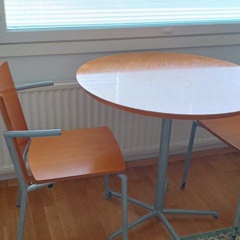 Tuolit ehjät ja siistit, ainoastaan yksi tuoli kaipasi pesua istuinosaltaan. Pöydän reunassa taisi kahdessa kohtaa olla pieni kohta josta maalia lähtenyt. Pöydän kuva otettu Jysk sivuilta koska pöytä nyt varastossa. Halutessaan voin ottaa kuvan pöydän pienistä kauneus virheistä.