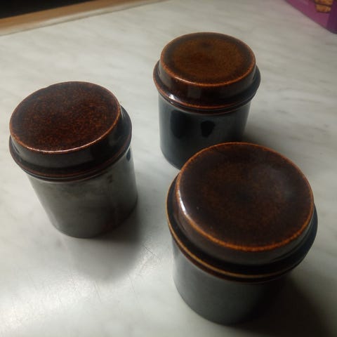 Myydään 19kpl kirkkaita Riihimäen kantti-sarjan maustepurkkeja. 17kpl kansi mukana, 2kpl ei kantta. Ei tiivisteitä. Kaikki 19kpl/86€, 6kpl/28€ ja 1kpl/5€. Yhden purkin mitat noin 9cm x 5cm x 5cm kannen kanssa. Ehjien purkkien ostajalle viimeisen kuvan kolhiintuneet purkit halutessaan kaupan päälle.