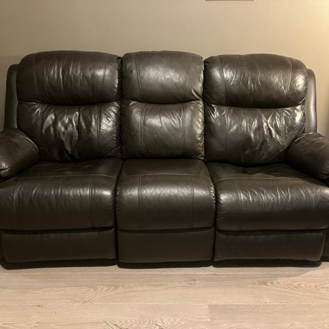 Myydään cinema sohva mekanismilla, keskellä säilytyslokero ja mukitelineet.