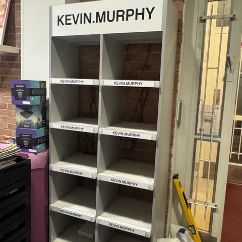 Käytöstä poistetut kaksipuoliset hyllyt joissa valot. Yhdessä kokonaisuudessa 4 kpl hyllyjä molemmilla puolilla. Näitä kokonaisuuksia 2 kpl sekä 2 yksipuolista hyllyä lisäksi.