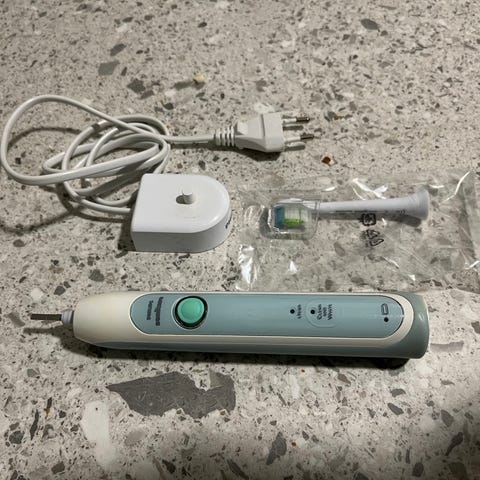 Käytetty, mutta toimiva hammasharja. Akku kestää ok ja laturi tulee mukaan. Käyttämätön harjaspää.