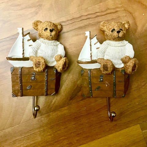 Myydään. Nouto. Naulakko ja kirjatuet x2.