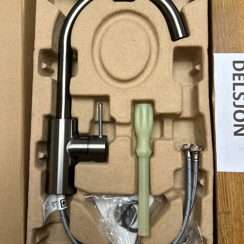 Myydään hyvä kuntoinen matta musta keittiöhana, jossa APK liitäntä.