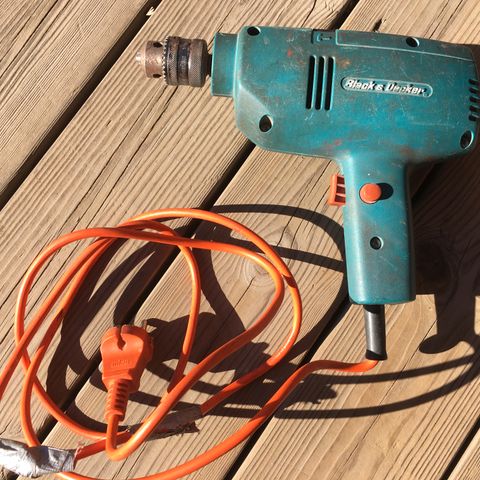 Myydään kuvassa oleva varastolöytö, todennäköisesti 1970-luvulta oleva Black & Decker (B&D) iskuporakone DNJ164. 2-nopeutta (900 / 2400) ja 10 mm istukkka.
