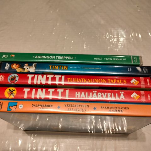 Myydään kuvan 90-luvun Tintti dvd:t.