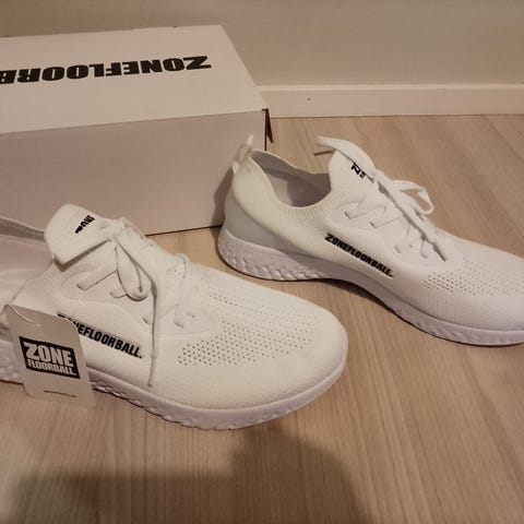 Myydään ylimääräiset uudet, käyttämättömät ja paketissaan olevat Zone Floorball Trainer Lightweight White lenkkarit.