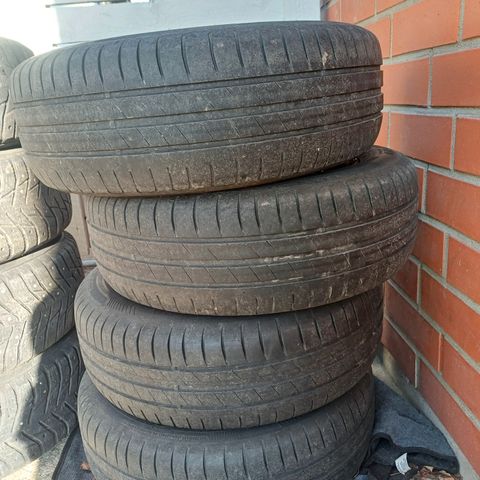 Renkaat vanteilla, koko 195/65R15. Renkaat ja vanteet käytettyjä, kuvissa näkyvä kunto. Renkaat melkolailla loppuunajetut. Vanteiden kunto pesun jälkeen on melko hyvä. Olleet Volkswagen Golffissa soviterenkaiden kanssa. Soviterenkaat vanteissa kiinni.