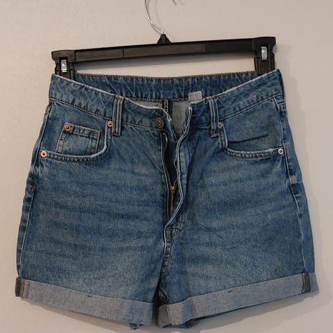 Myydään kahdet farkkushortsit, ehjät käytetyt. Kokolaput kuvissa, samaan aikaan olleet käytössä.