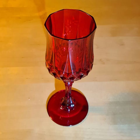 4 hyväkuntoiset Rubiininpunaiset Cristal D'Arques Durand Samppanjalasit