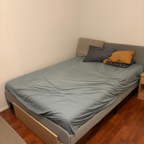 Kuvissa näkyvä 140cm sänky, Kodin Ykkösestä noin 5 vuotta sitten. Merkki ei muistu mieleen, ollut teinitytöillä käytössä. Käytetty nyt ilman jalkoja, niinkuin kuvista näkyy.