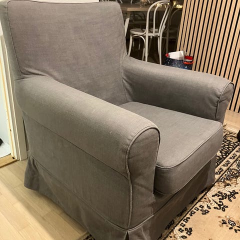 Ikean nojatuoli, viitisen vuotta vanha mutta ollut vähäisellä käytöllä. Tarkkaa tietoa mallista ei ole muistissa. Myydään muuton alta pois tilanpuutteen takia.