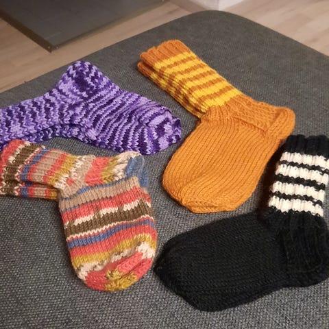 Myydään uusia, itsetehtyjä ja 7-langasta. Konepesu 40 astetta. Eri kokoisia. Hinta koon mukaan.
