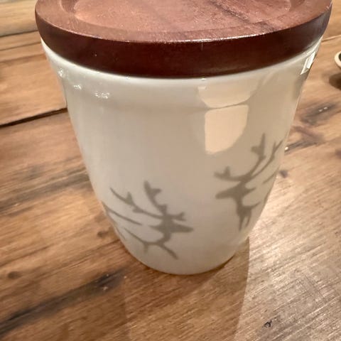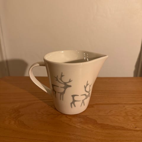 Pentik Saaga kulho, jossa on porokuviointi. Valkoinen väri ja keraaminen materiaali.